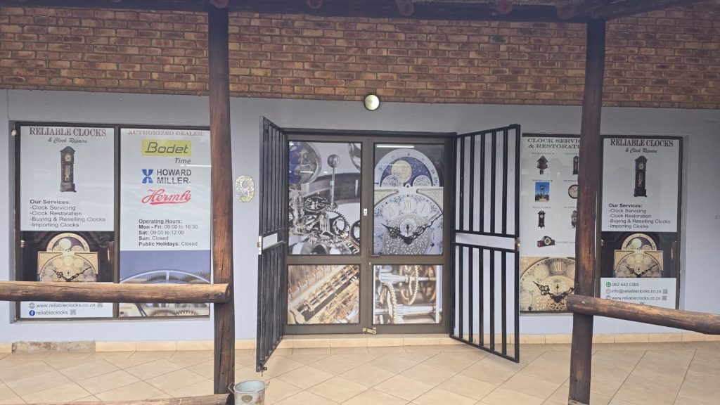 Puik en vriendelike diens. Hy het die binnegoed van die klokke kom afhaal, gediens en weer teruggebring en ingestel. Ken hulle stories met ou klokke. Hoogs tevrede.